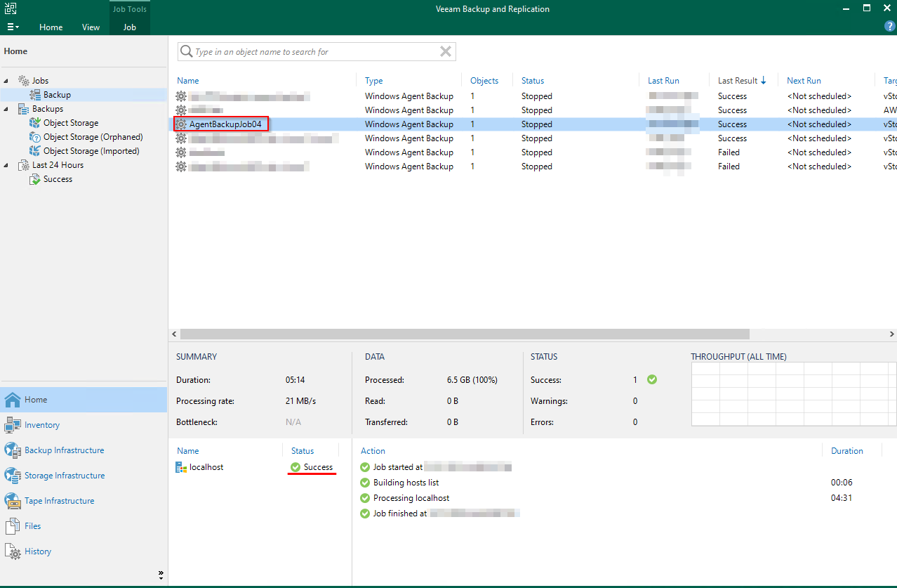 **Step 11:** After the job is created, the user can check by: going to the Home section, select Jobs/Backup, select the created Job if the status is Success then the job has been created, the user can perform the backup.