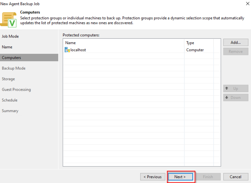 **Step 4:** In the **Computer** tab, the user can choose the computer to perform the backup. Then press **Next**.