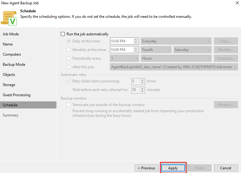 ### Follow these steps to create a Backup Job: