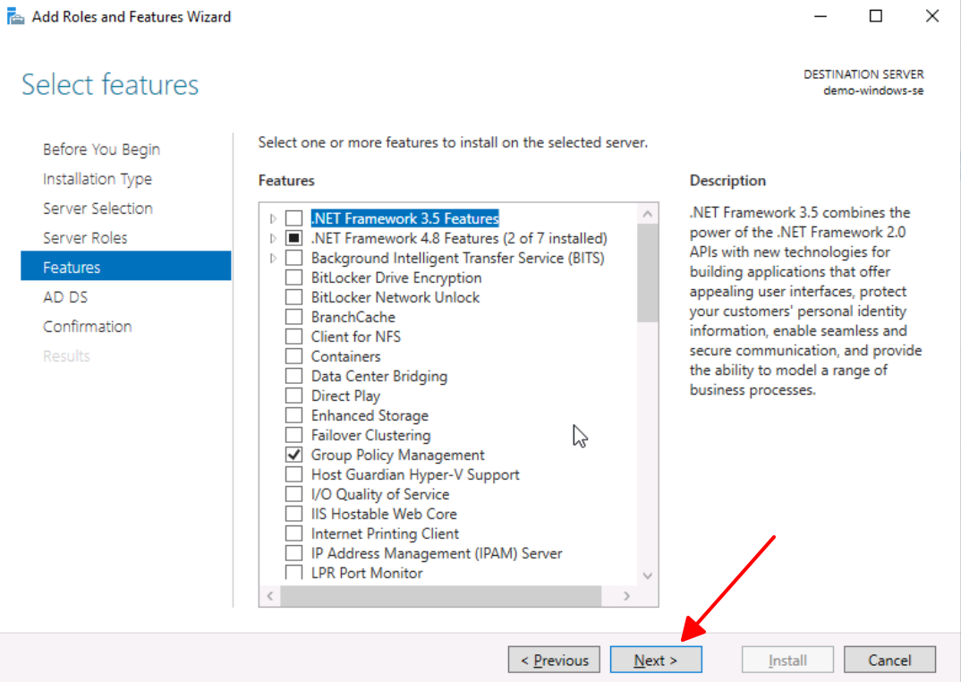 9. On the AD DS page, select **Next**