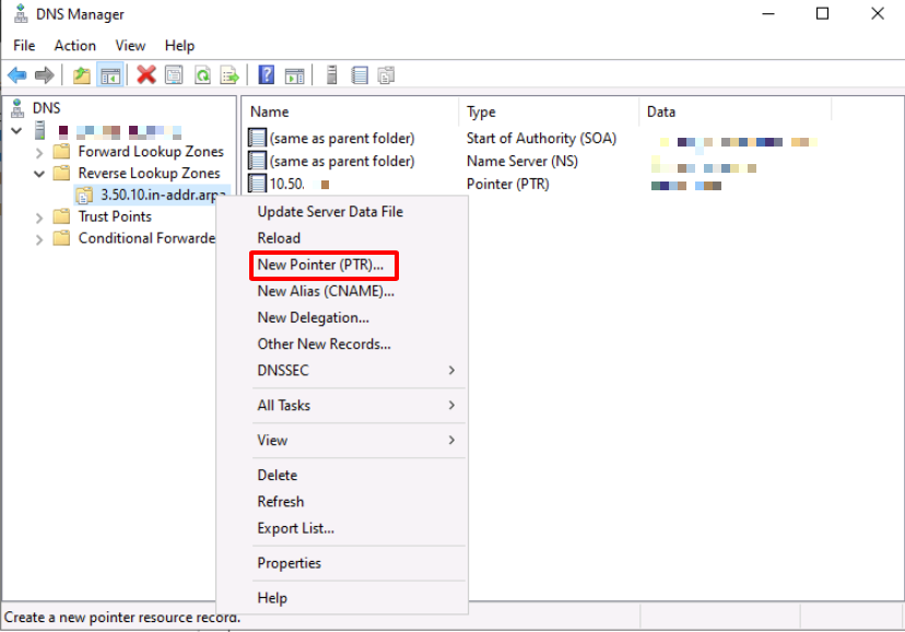 1. Open **DNS Manager** by selecting **Tools** , then selecting **DNS**