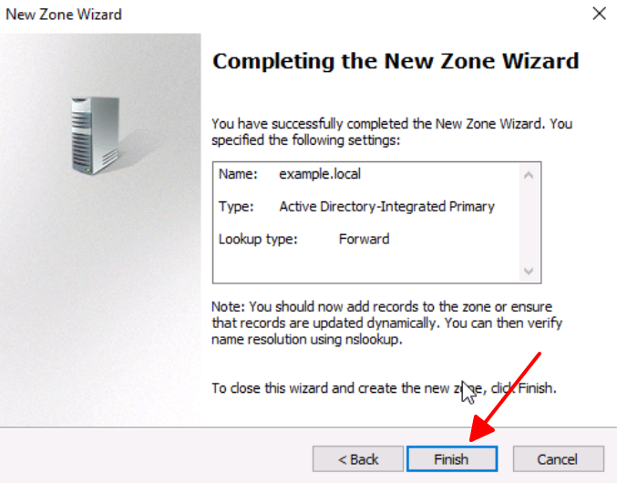 Next, you will need to create a Forward Lookup Zone to convert the domain to an IP address. Here are the steps: