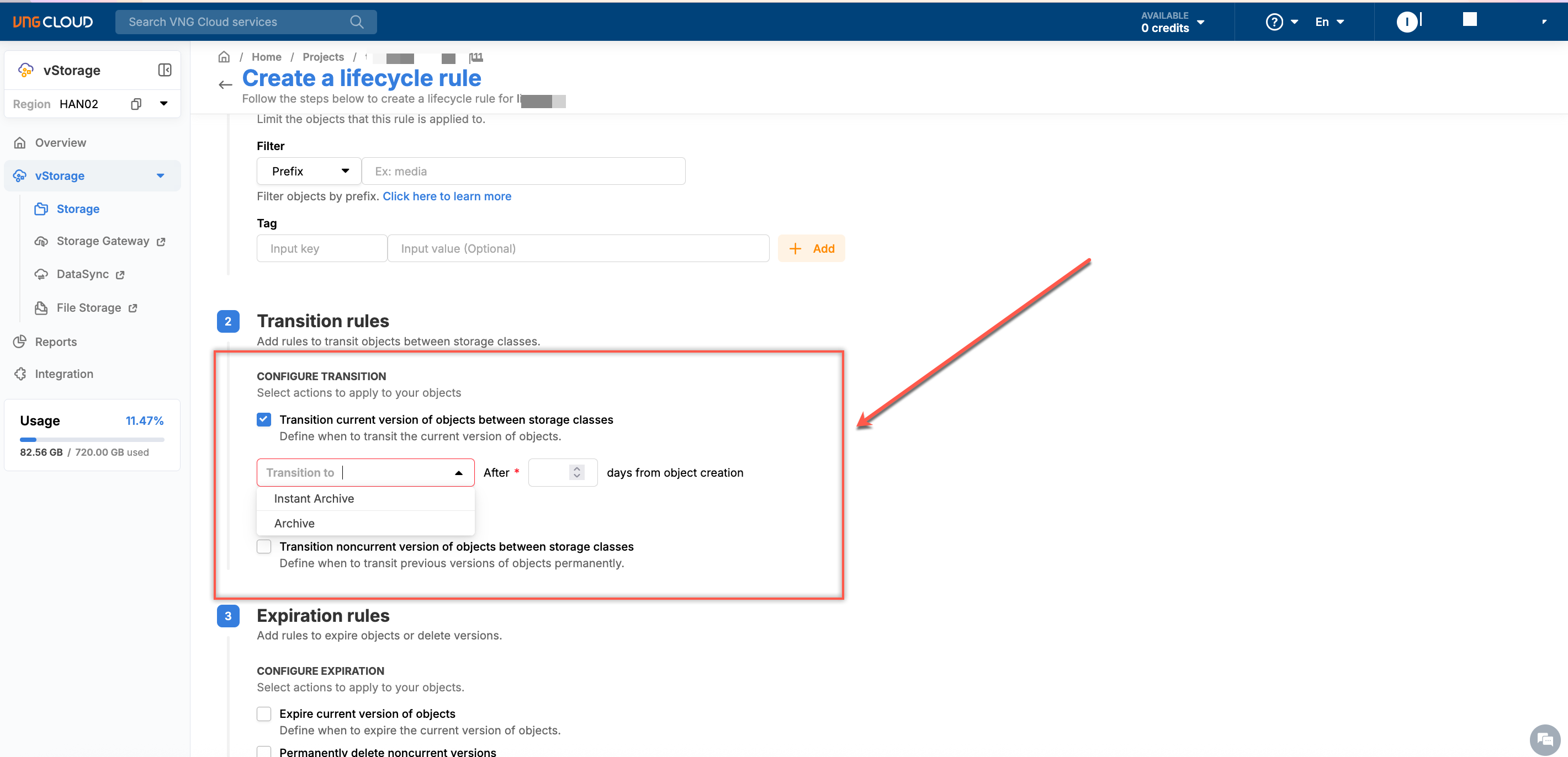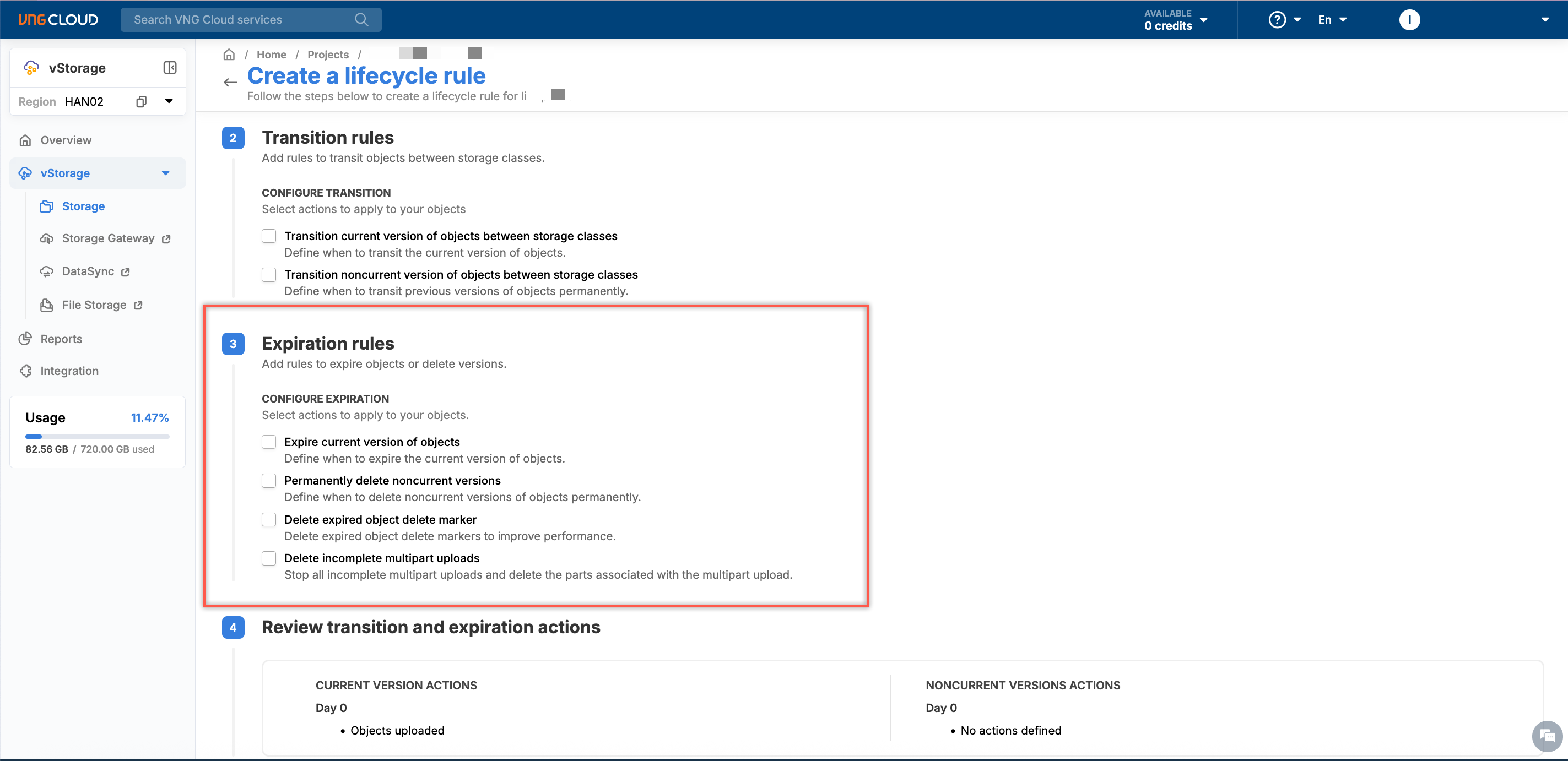 Expiration rule is a set of rules that automatically delete objects when they expire. Follow the instructions below to set up a expiration rule: