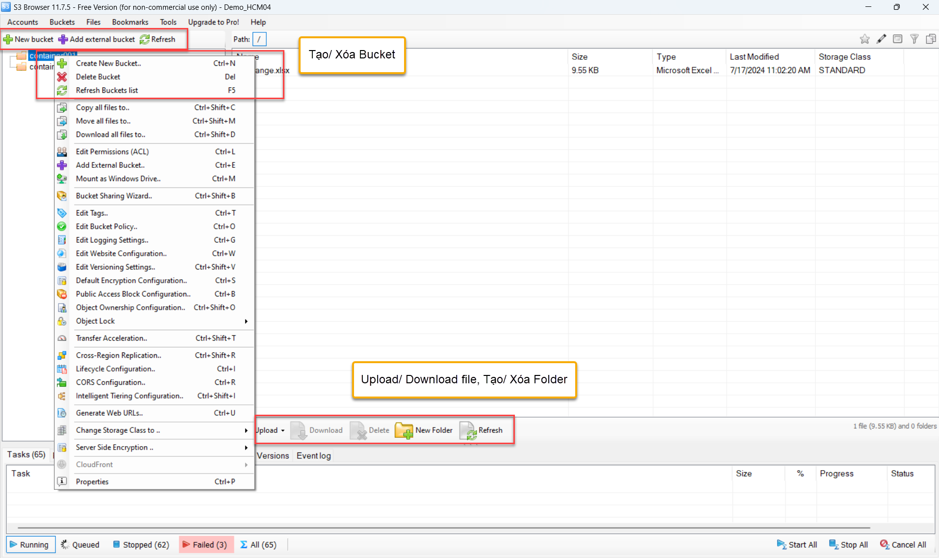 Below are instructions for some common use cases you can perform on S3 Browser: