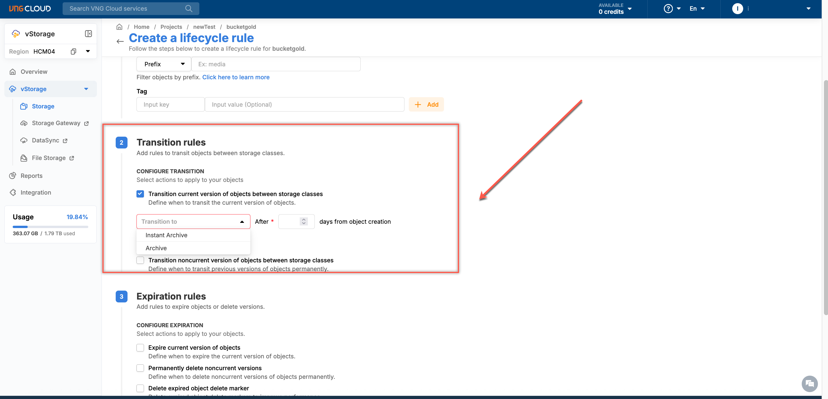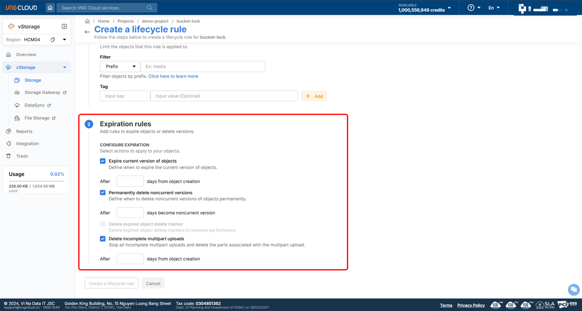 **Lifecycle** on vStorage is a feature that helps you manage the lifecycle of objects in your bucket, thereby optimizing storage costs. With Lifecycle, you can configure rules in 2 types: