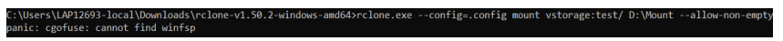 * If you encounter an error about missing winfsp package as shown below, you can download additional packages at this link <https://github.com/billziss-gh/winfsp/releases/tag/v1.4.19049>